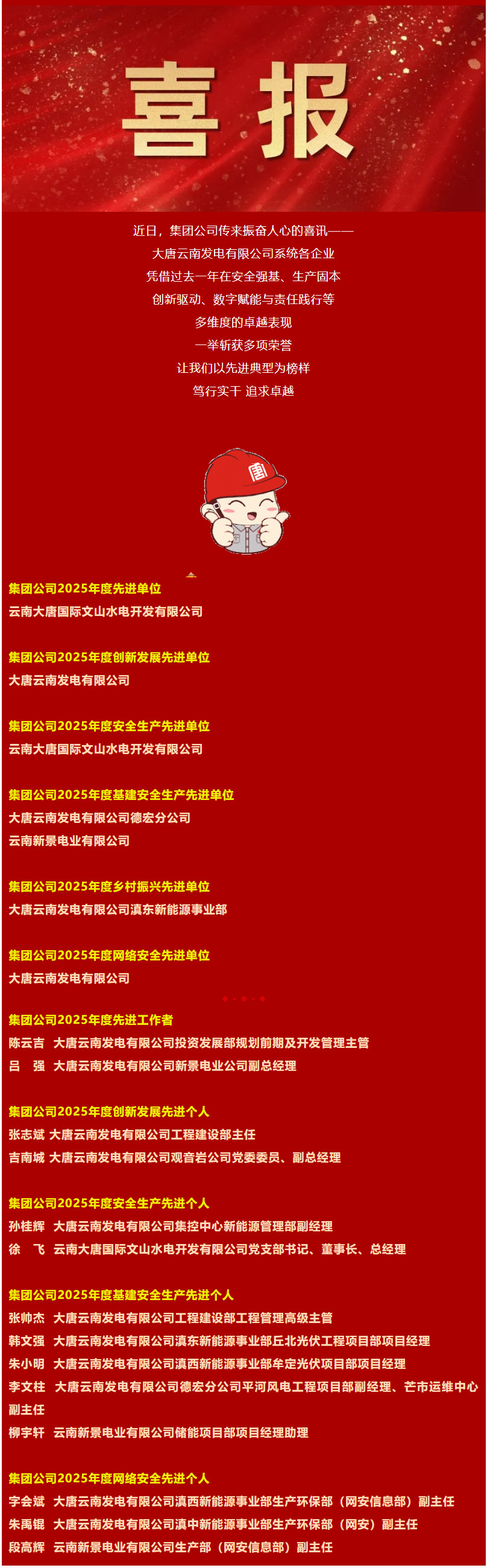 喜报 | 大唐云南公司荣获集团公司2025年度多项荣誉