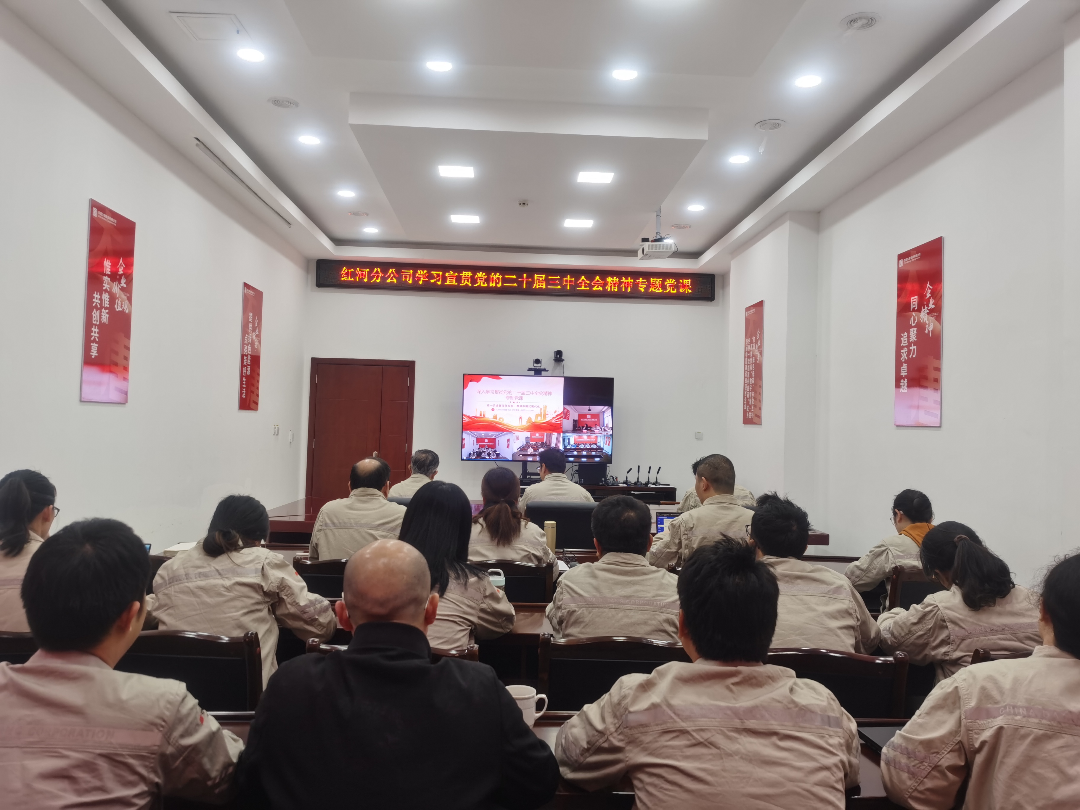 5月10日,红河分公司经营技术专家方建文以“深入学习贯彻党的二十届三中全会精神,统筹发展和安全,防范化解风险隐患”为主题,为红河第二党支部宣讲党的二十届三中全会精神。方建文要求,必须统筹发展和安全,始终坚持安全发展的理念,切实把安全作为发展的前提、基础和保障。必须充分认识安全生产工作的艰巨性、复杂性、长期性,既要从事故中吸取教训,开展有针对性的举一反三行动;又要建立长效工作机制,抓好安全基础工作。罗荣雄强调,必须坚持以习近平新时代中国特色社会主义思想为指导,认真学习贯彻党的二十届三中全会精神,以更加强烈的使命担当和更加饱满的精神状态,投入到金河四级水电站机组检修工作中,确保安全生产形势平稳。