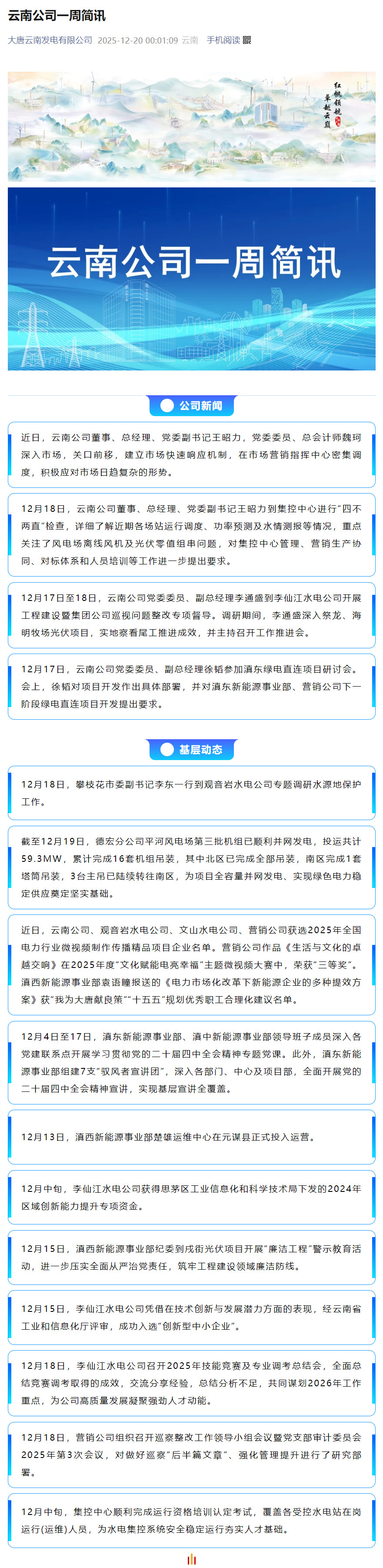 云南公司一周简讯