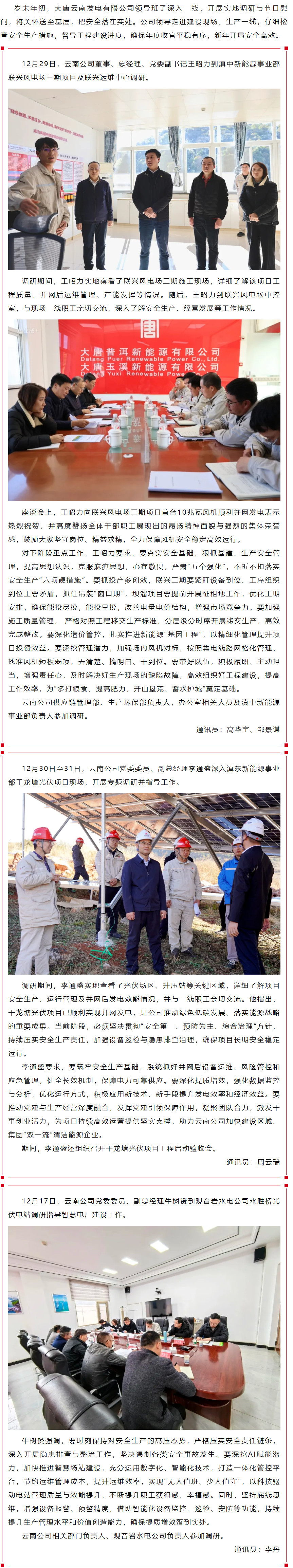 岁末送暖迎新年 一线督战保安全 | 大唐云南公司领导班子深入一线开展调研慰问