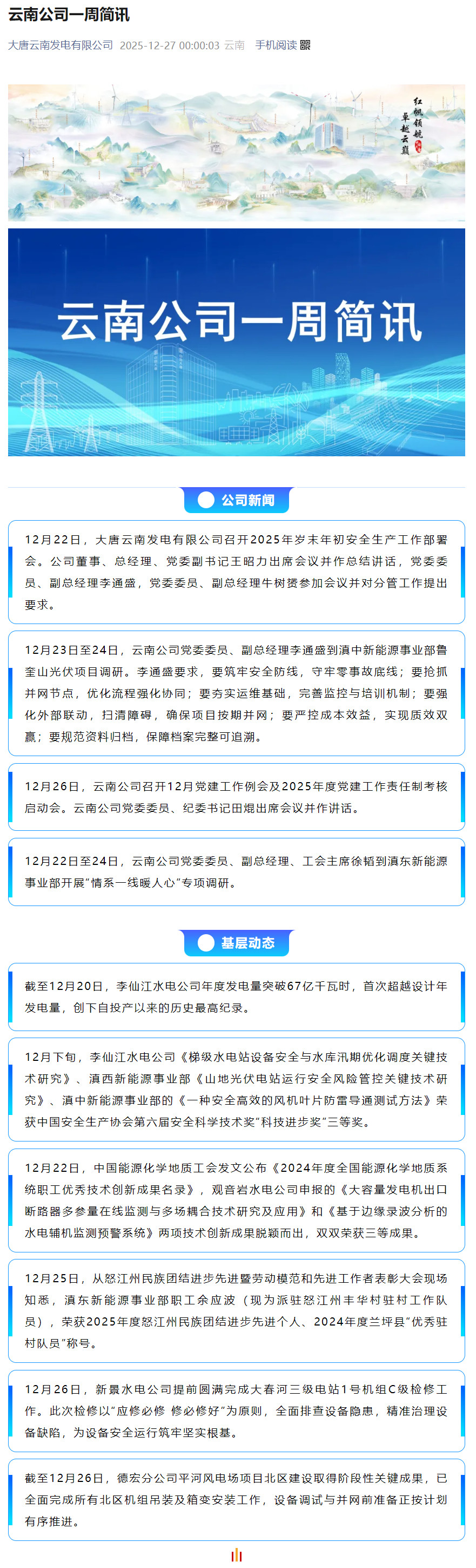 云南公司一周简讯