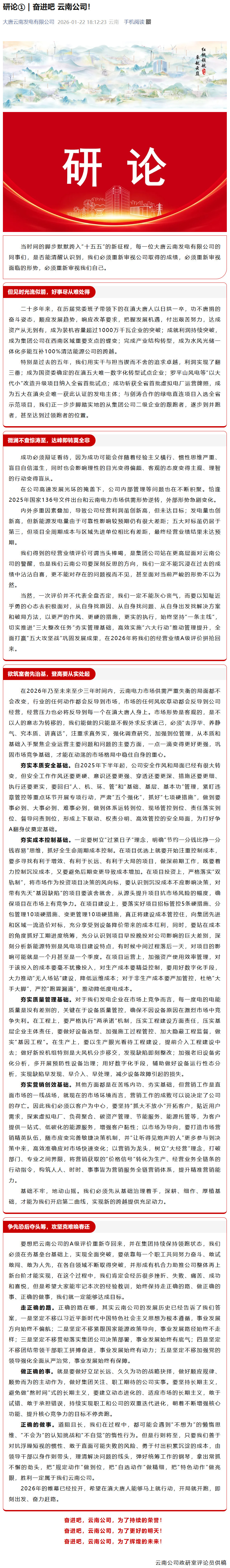 研论① | 奋进吧 云南公司!