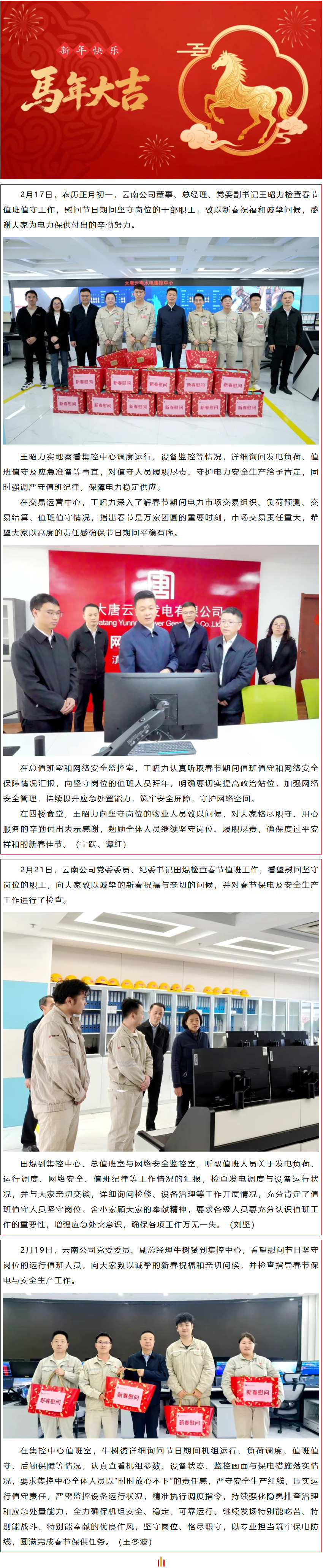 除夕慰问暖人心 连线祝福鼓干劲 | 云南公司主要领导慰问一线坚守者