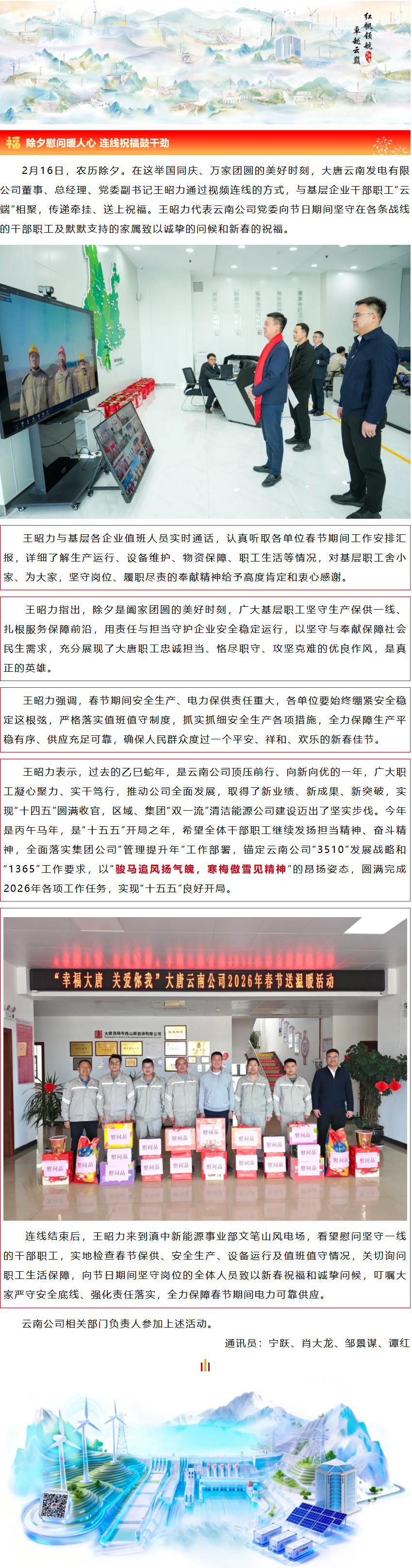 除夕慰问暖人心 连线祝福鼓干劲 | 云南公司主要领导慰问一线坚守者