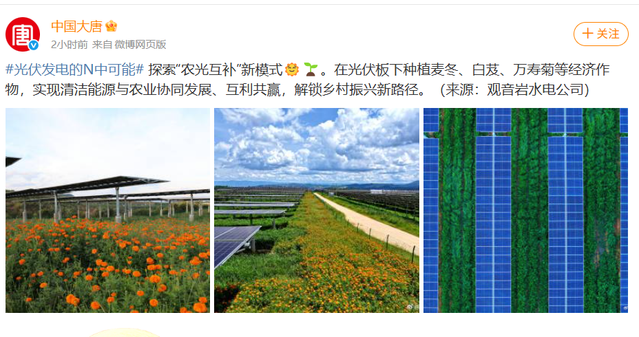 【微博】观音岩水电公司:探索“农光互补”新模式