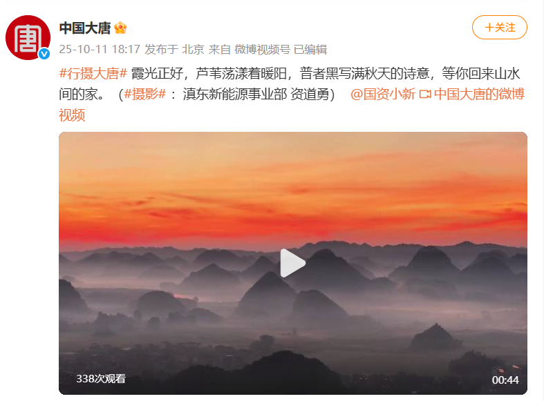 【微博】滇东新能源事业部:霞光正好,芦苇荡漾着暖阳,普者黑写满秋天的诗意