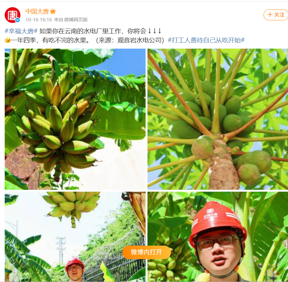 【微博】观音岩水电公司:一年四季,有吃不完的水果