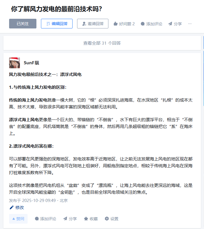 【知乎】滇东新能源事业部、李仙江水电公司、德宏分公司、滇中新能源事业部:答题:你了解风力发电的最前沿技术吗?