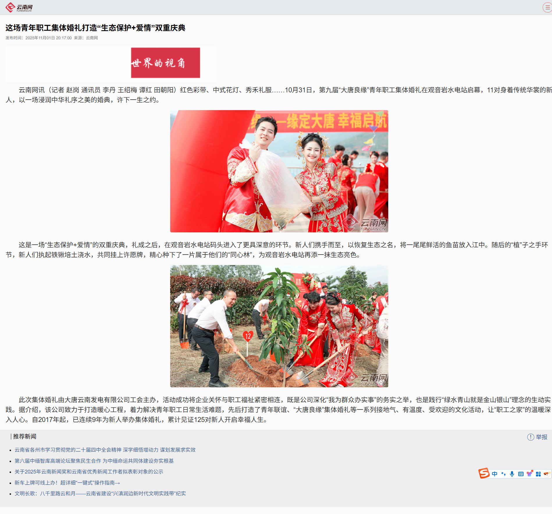【云南网】这场青年职工集体婚礼打造“生态保护+爱情”双重庆典