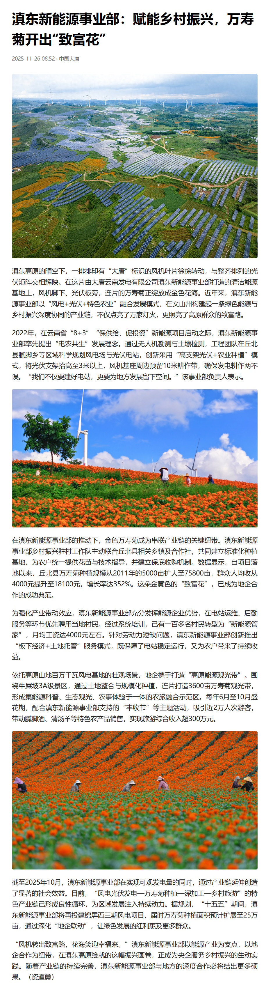 【今日头条】滇东新能源事业部:赋能乡村振兴,万寿菊开出“致富花”