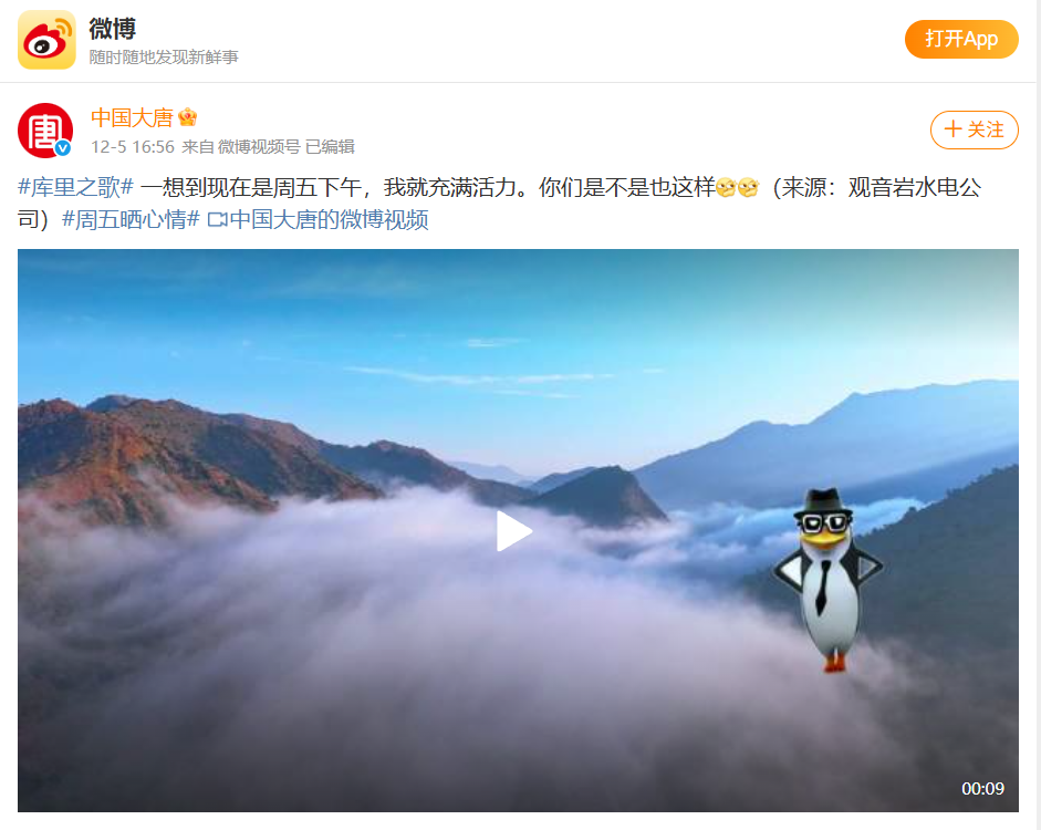 【微博】观音岩水电公司:一想到现在是周五下午,我就充满活力