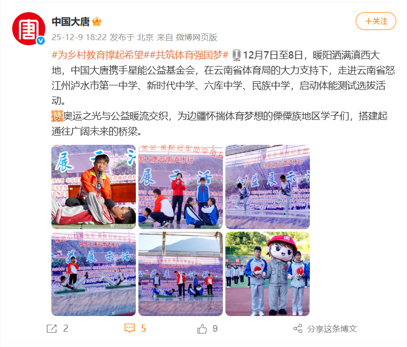【微博】中国大唐:奥运之光与公益暖流交织