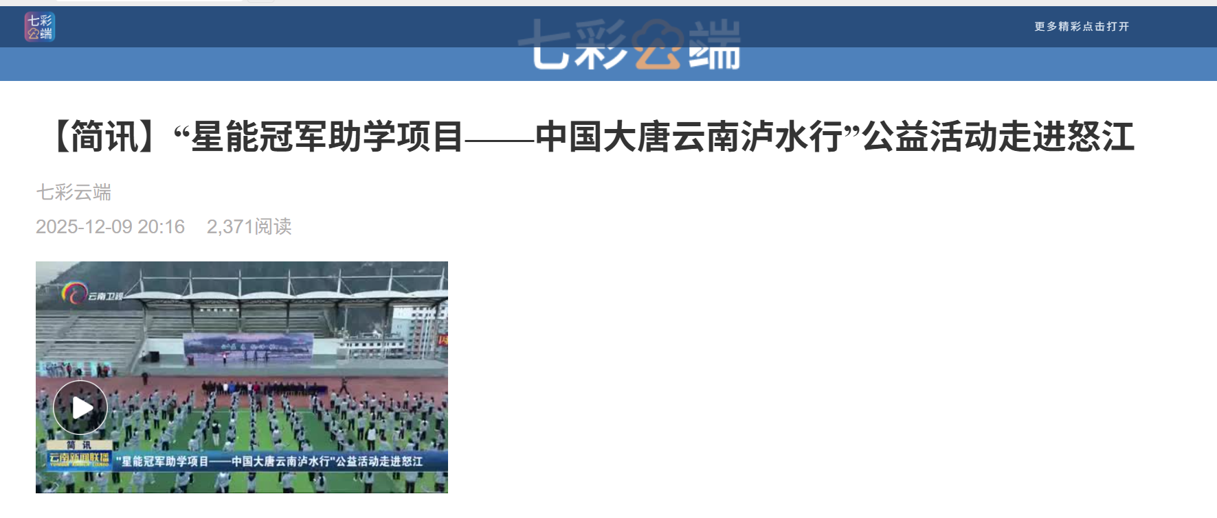 【云南卫视】“星能冠军助学项目--中国大唐云南泸水行”公益活动走进怒江