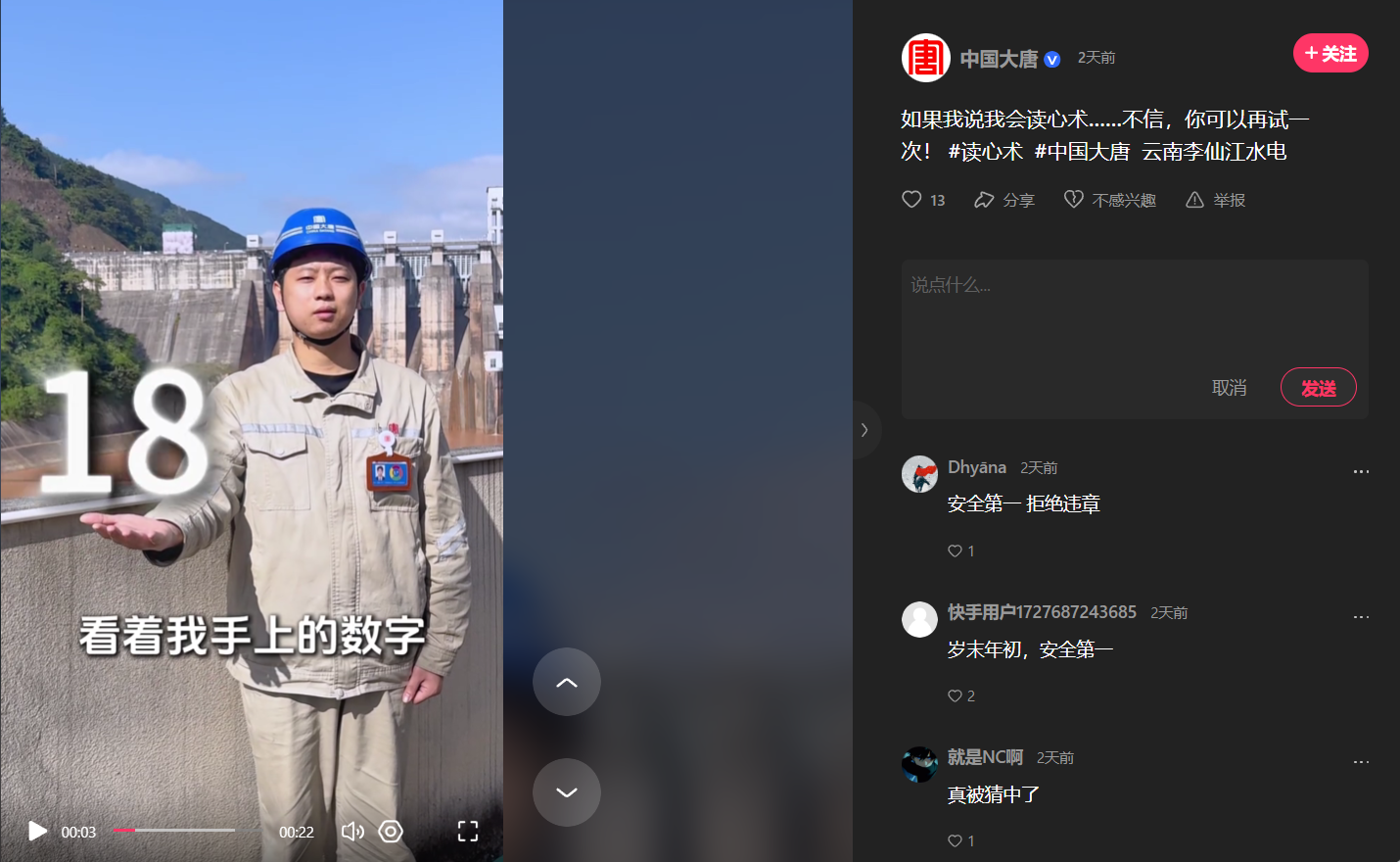 【快手】李仙江水电公司:如果我说我会读心术……不信,你可以再试一次!