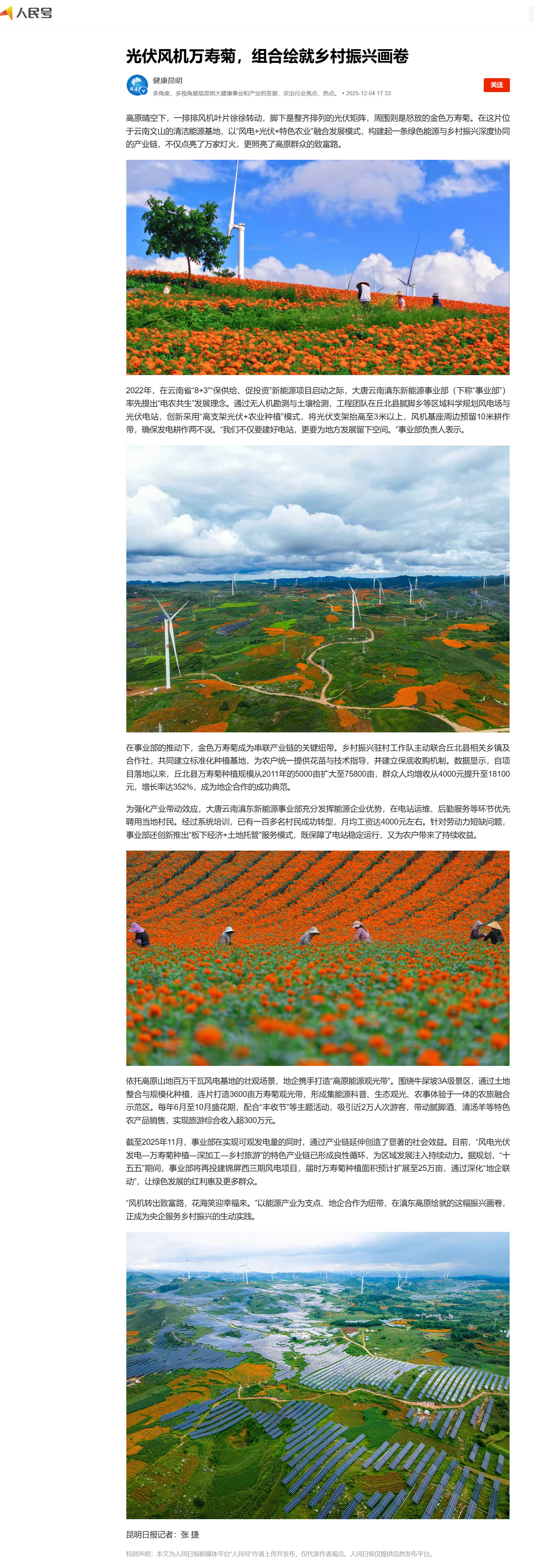 【掌上春城、法制日报、人民日报】大唐云南滇东新能源:风机光伏下,万寿菊开出“致富花”