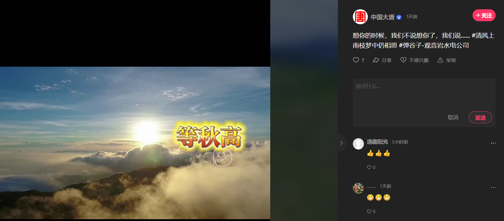 【快手】观音岩水电公司:想你的时候,我们不说想你了,我们说