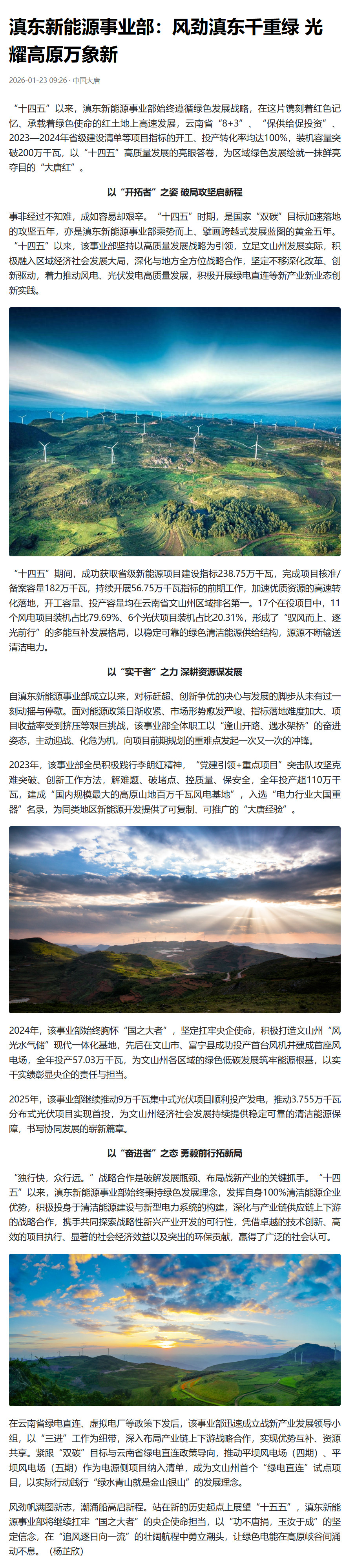 【今日头条】滇东新能源事业部:风劲滇东千重绿 光耀高原万象新