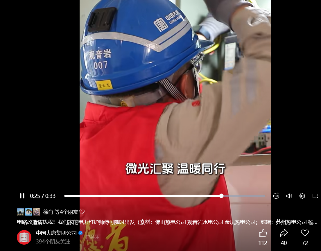 【视频号】观音岩水电公司:电路改造请找我!我们家的电力维护师傅可随时出发
