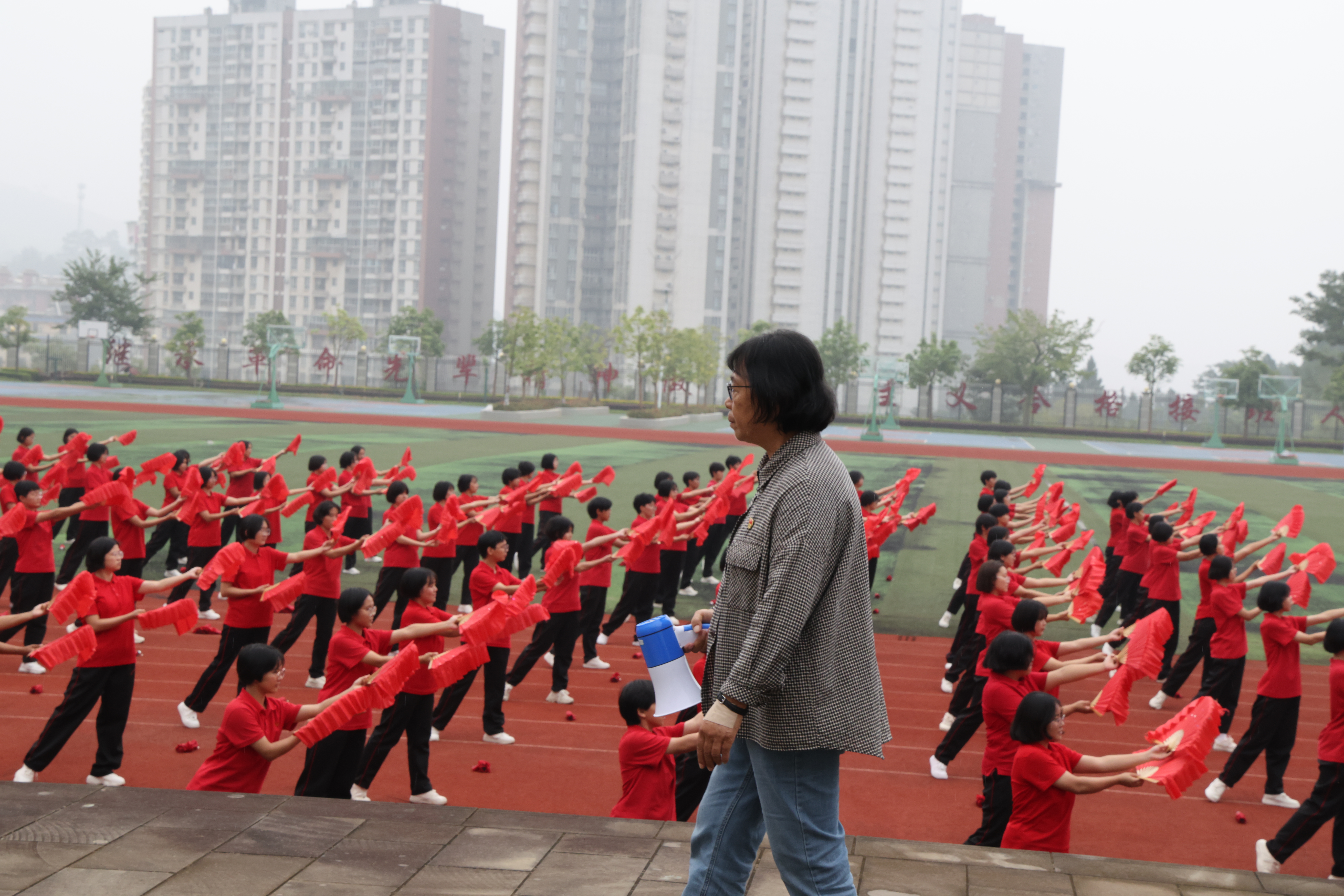 随后与张桂梅校长及女高师生共同高唱《没有共产党就没有新中国》,并齐声朗诵《七律·长征》,激昂的旋律与豪迈的诗句交织,展现出女高师生和新时代党员昂扬向上的精神风貌。期间,党员干部还观摩了女高师生《红梅赞》等红色课间操,并与师生互动朗诵《为人民服务》,口号声此起彼伏,声声誓言凝聚起奋进新征程的磅礴力量。