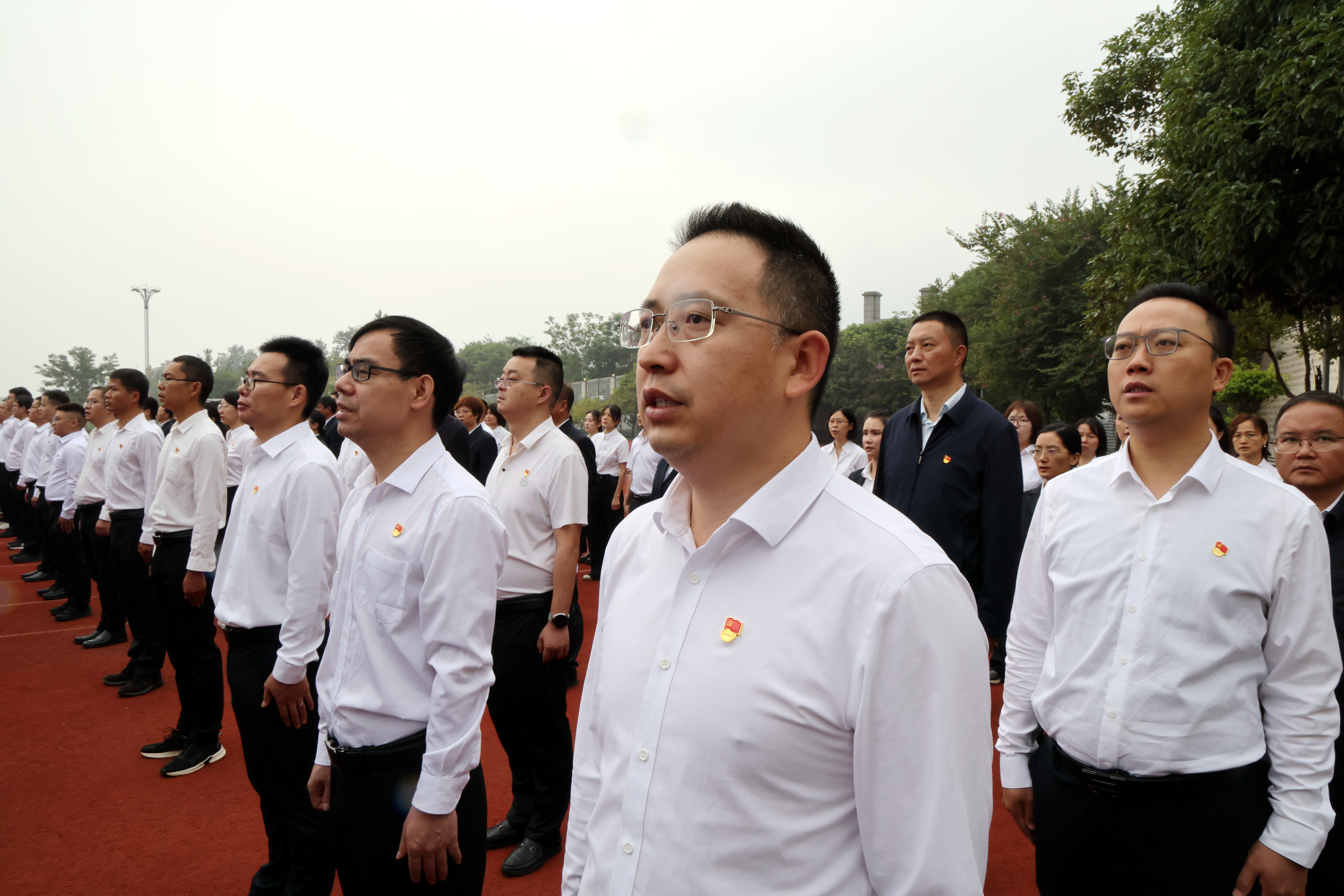 伴随着女高师生嘹亮的《万疆》,党性教育正式拉开帷幕。“我志愿加入中国共产党……”全体党员整齐列队,面向鲜红党旗,庄严地举起右拳,重温入党誓词,铿锵有力的誓言在校园上空回荡,提醒着每一位党员时刻不忘入党初心,牢记肩负的神圣使命和职责。