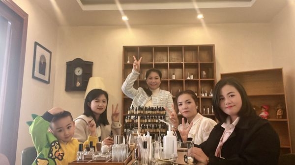 在耐心地听完讲解制作方法后,现场的女职工们开始自己动手调制香水,在容器里加入适量的香水溶剂、陈化剂、定香剂、水,最后倒入自己调完的香型,搅拌至液体清澈后,好闻的香水就制作完成了。现场香气四溢,到处弥漫着清淡的花香,每个人都调制出了专属于自己的国色天香。