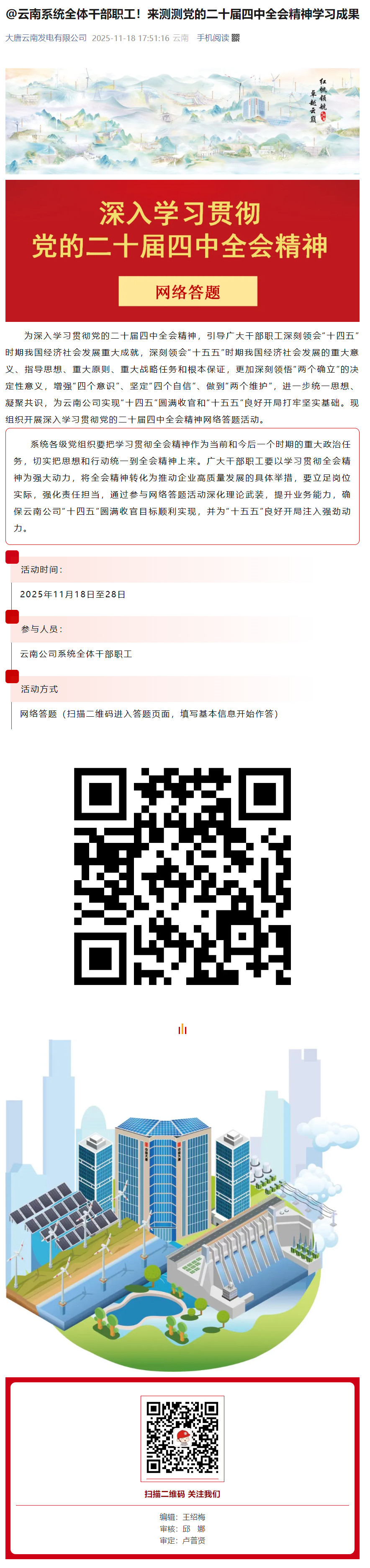 @云南系统全体干部职工!来测测党的二十届四中全会精神学习成果