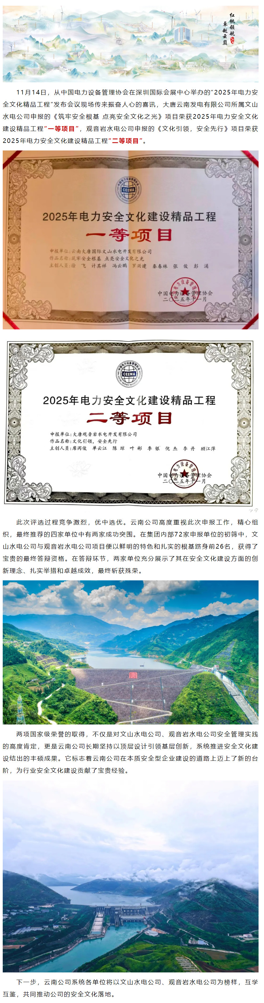 喜讯!大唐云南公司揽获2025年电力安全文化建设精品工程双奖