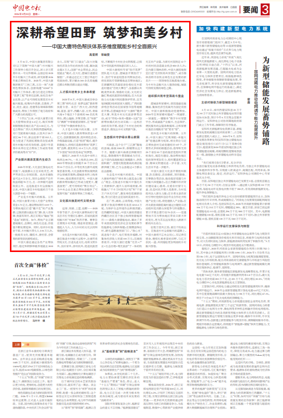 [中国电力报]深耕希望田野 筑梦和美乡村 ——中国大唐特色帮扶体系多维度赋能乡村全面振兴