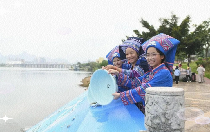 广西:多地开展增殖放流 珍稀鱼苗回到母亲河怀抱